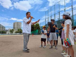イベント開始時には、アスレチック・リエゾン・西宮会長の朝原宣治様より、参加する子どもたちにご挨拶いただきました!