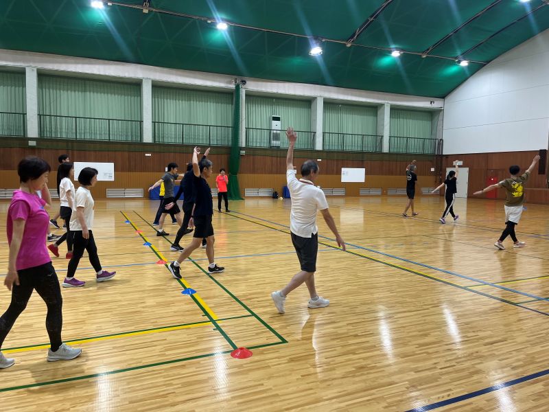 参加者の皆さんで準備体操を行い、抽選会も行いました!