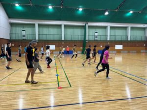 ボールを使った楽しいレクリエーションから、ドリブル、ゴールを狙ったシュートを行いました!