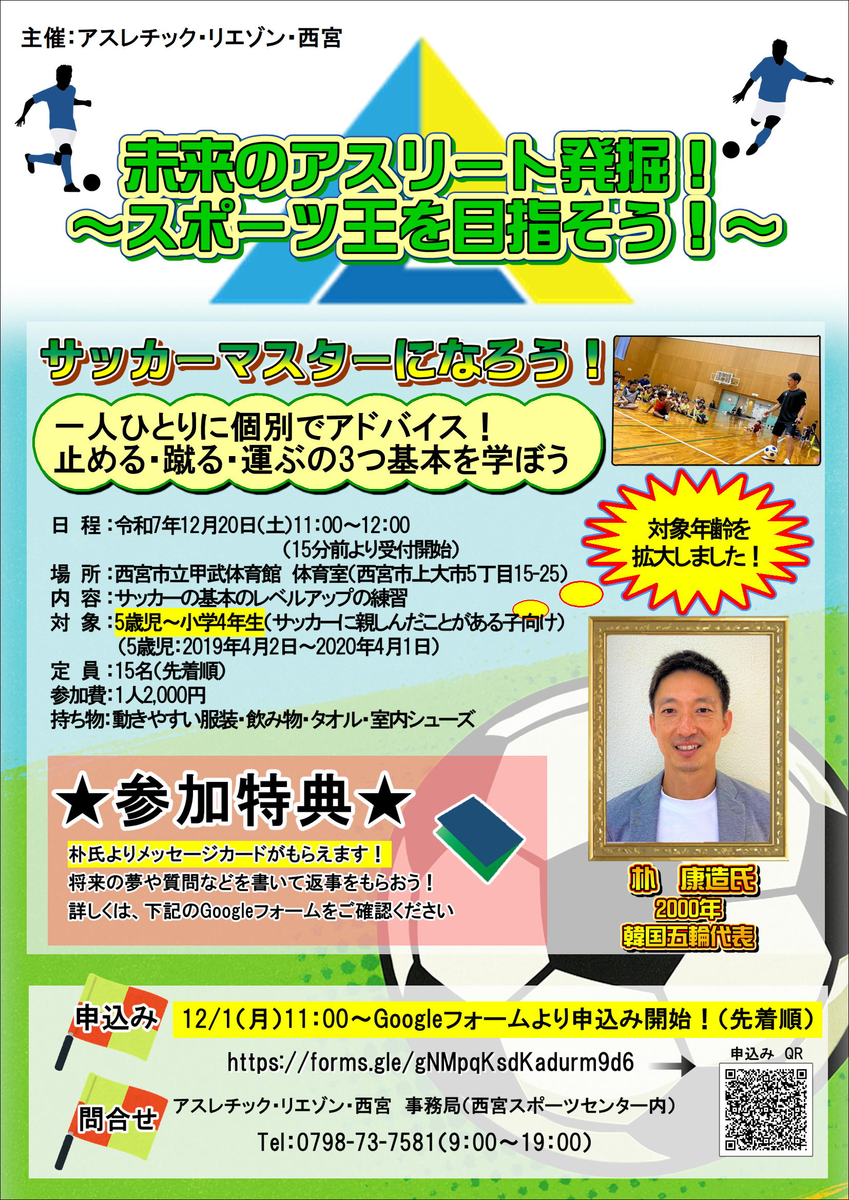 問い合わせは、アスレチック・リエゾン西宮事務局(西宮スポーツセンター内)☎0798-73-7581