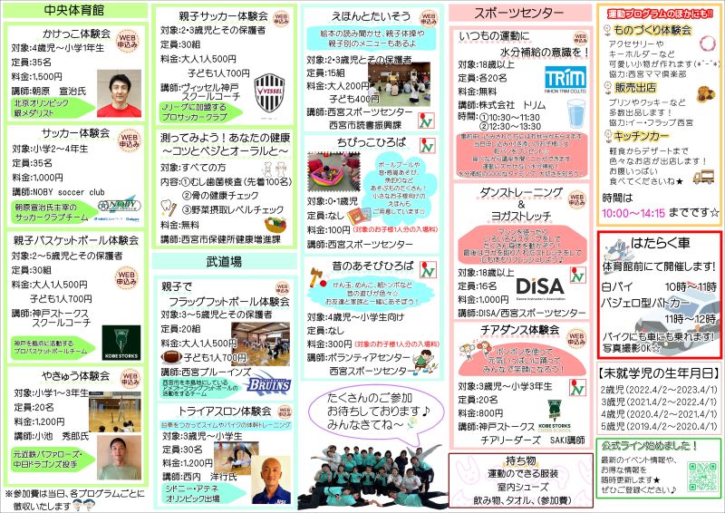 アスレチック・リエゾン・西宮所属のアスリートに教えてもらえるスポーツ体験会や、