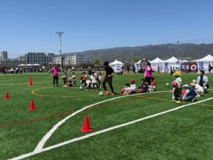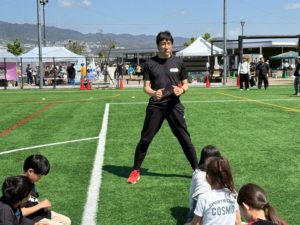 アスレチック・リエゾン・西宮所属のトップアスリートから学ぶ体験会のかけっこ、サッカー、親子バスケットボール、やきゅう、フラッグフットボール、トライアスロン、ダンストレーニング!